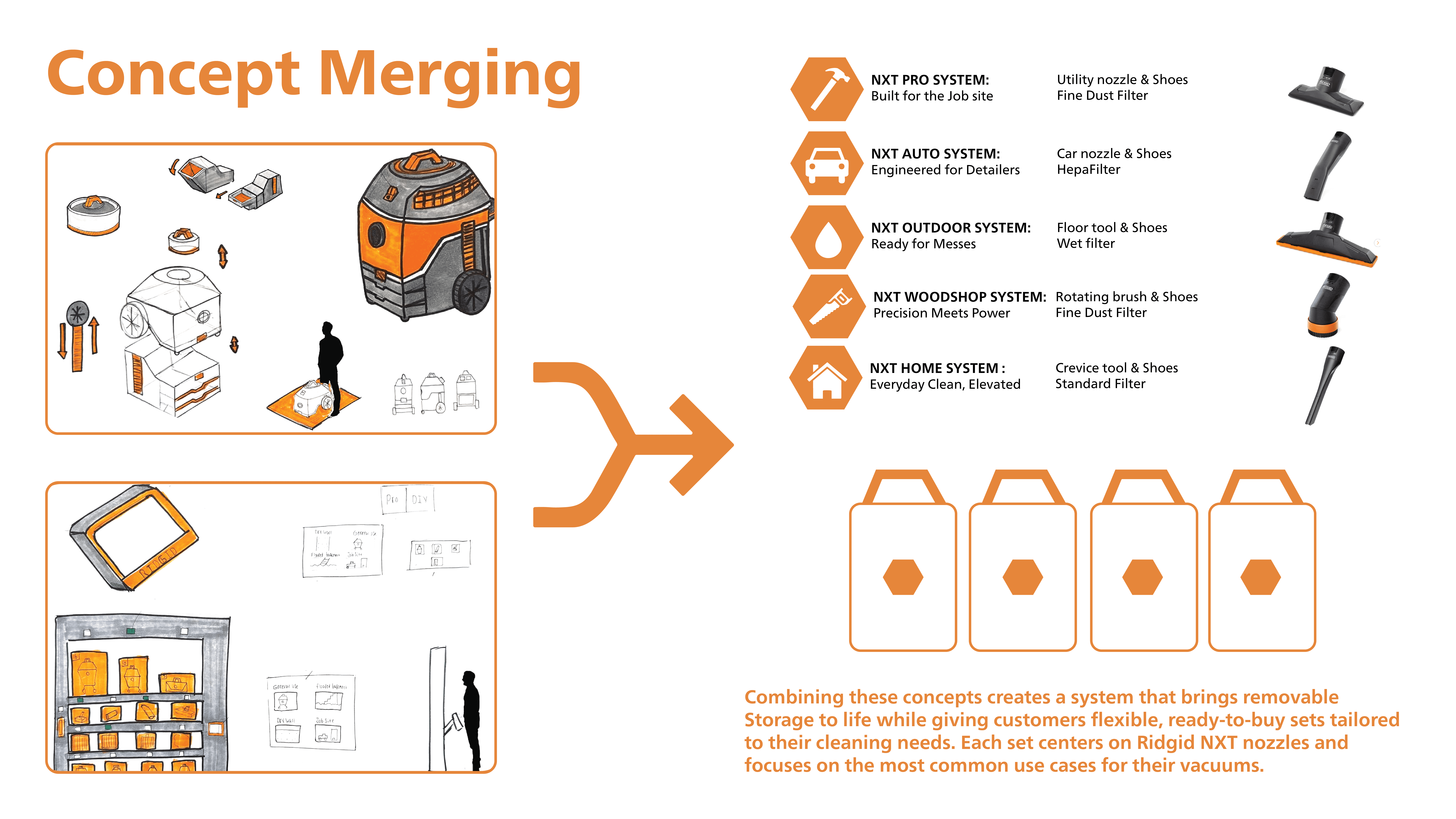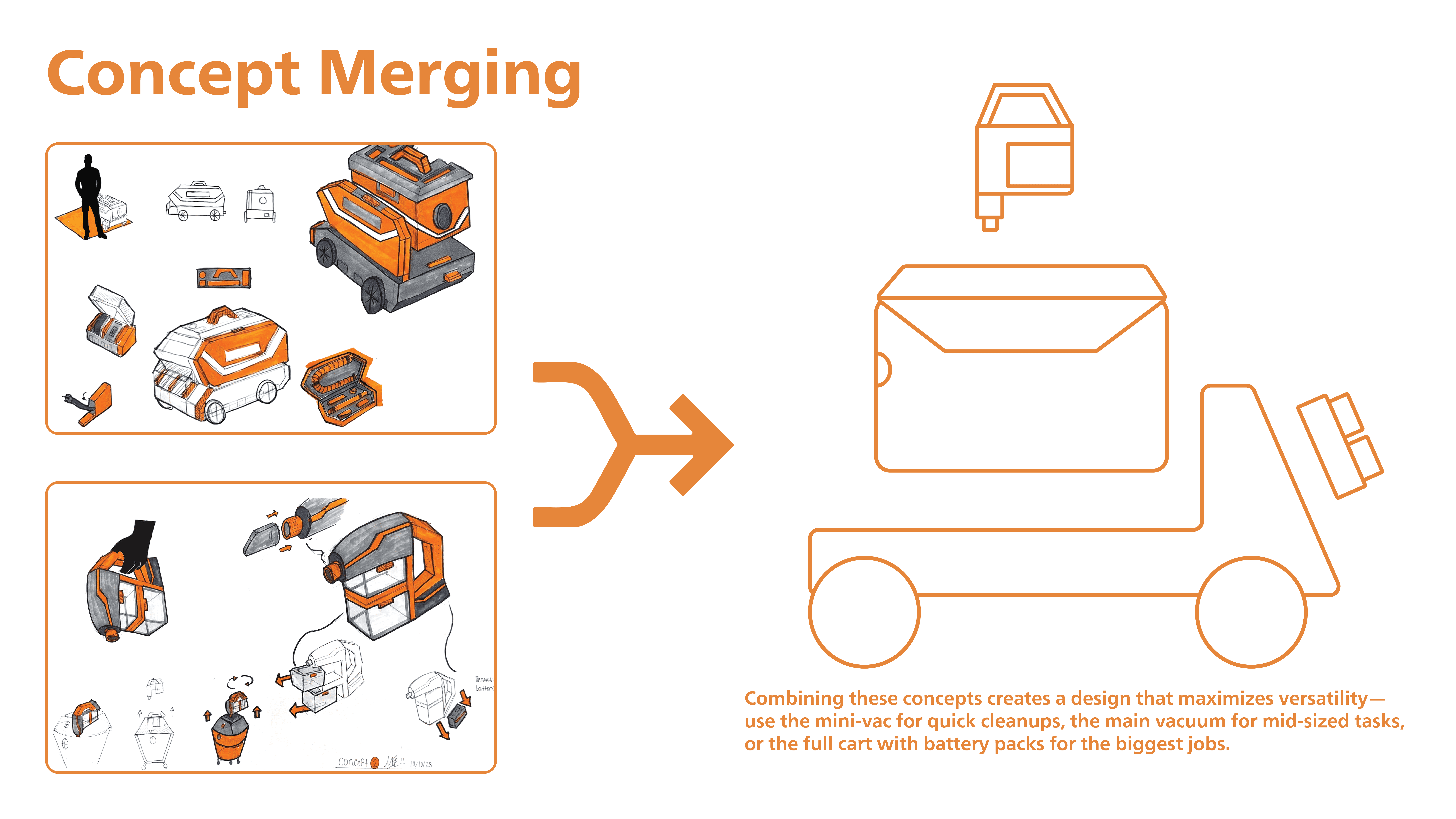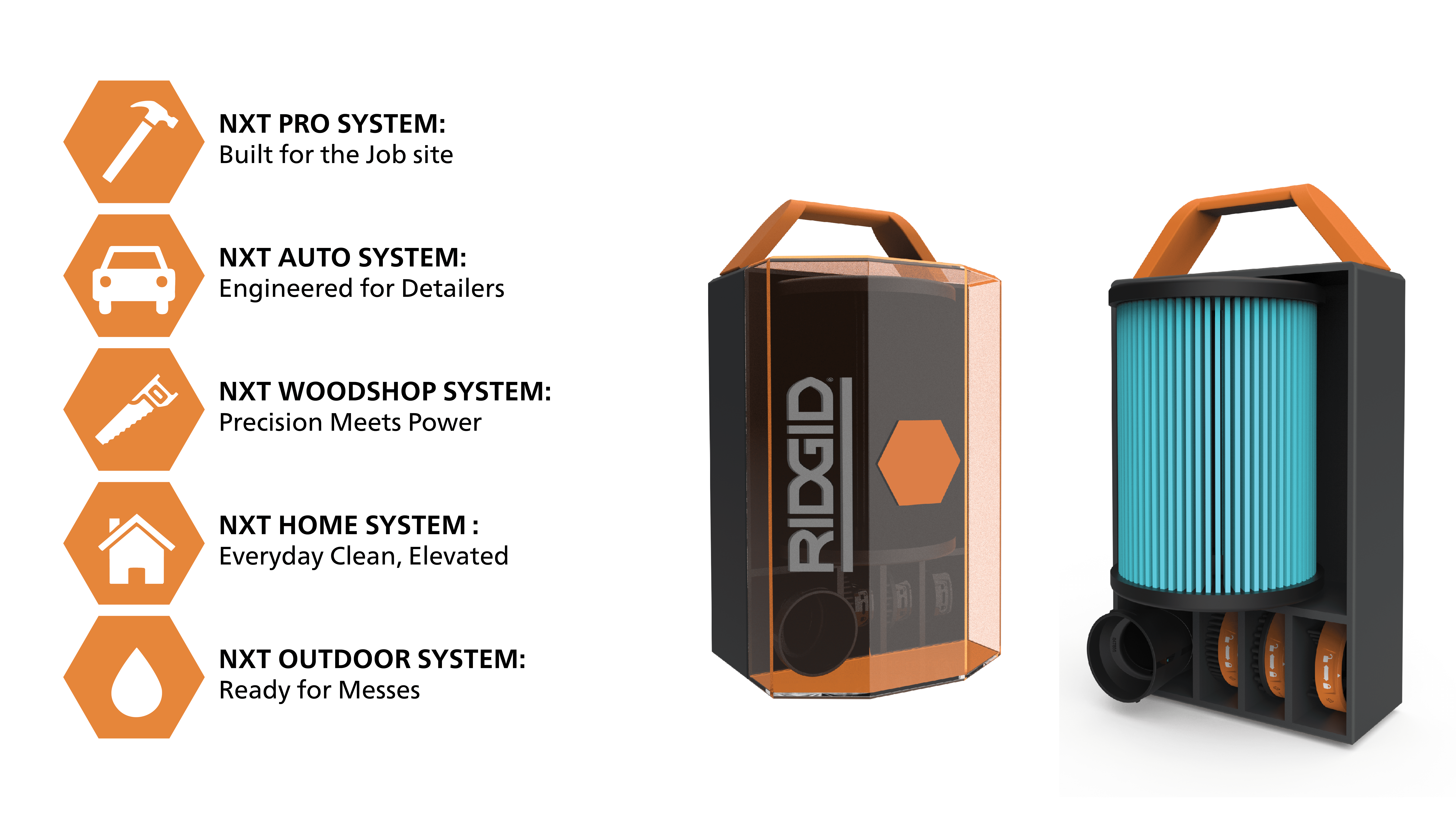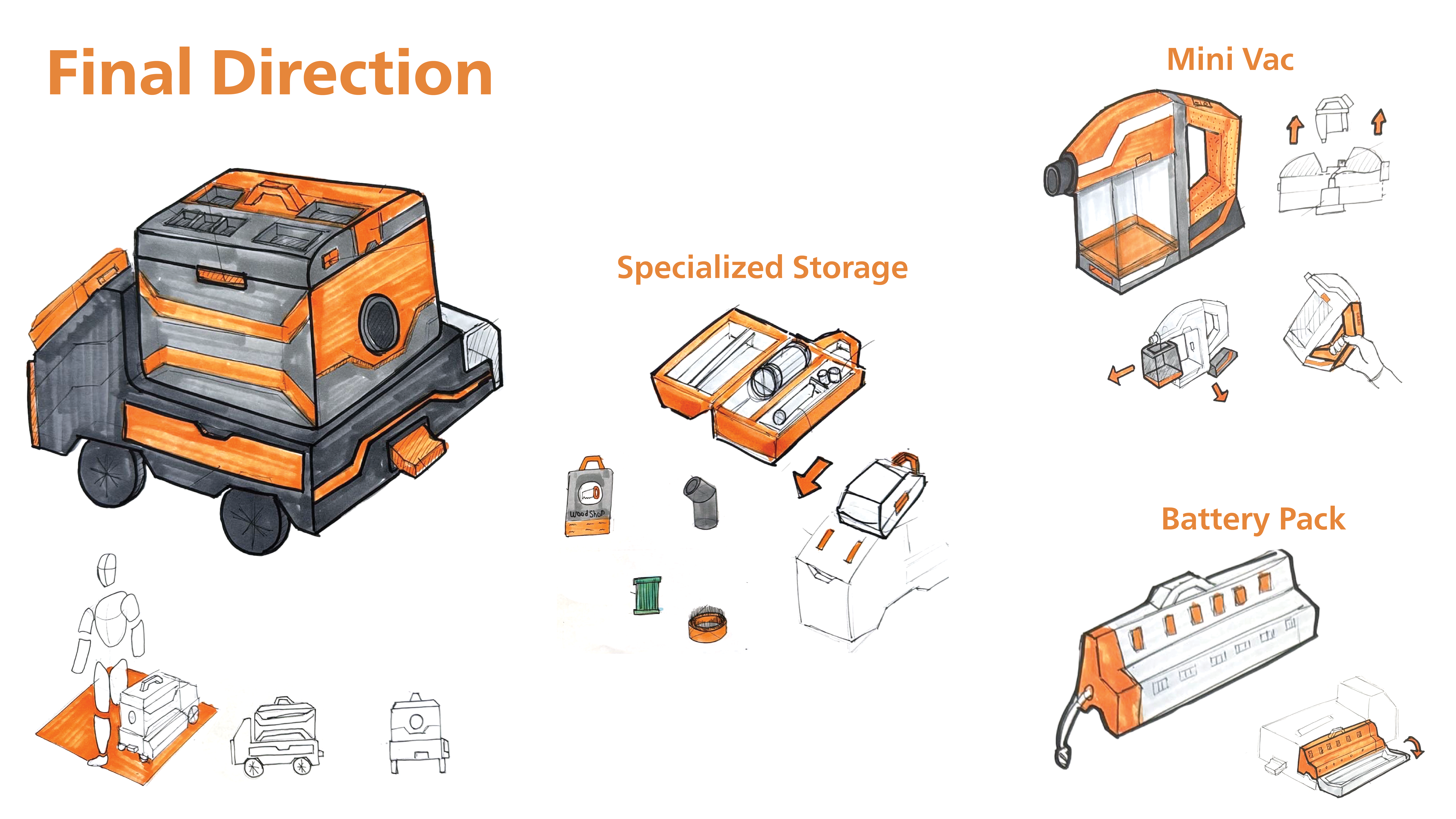 This project redesigns Ridgid current battery powered wet dry vacuums, by creating a modular vacuum system