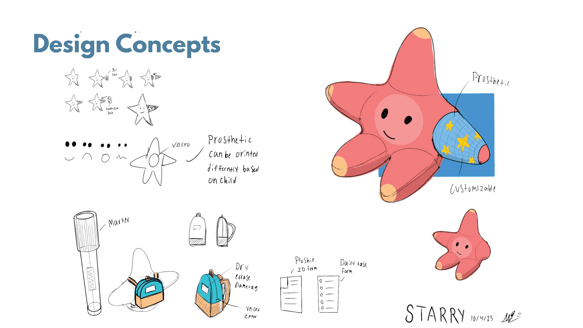 Starry is a reimagined toy designed to provide both learning and comfort for children with prosthetics, creating a playful and supportive experience.